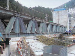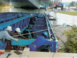 PC橋梁等建設の際に、現地等諸条件に依りステージングでの現場打設が行なわれますが、固定支保工架設等にH鋼を使用される場合の解体又は架設時にH鋼の横移動作業が必要になります。
